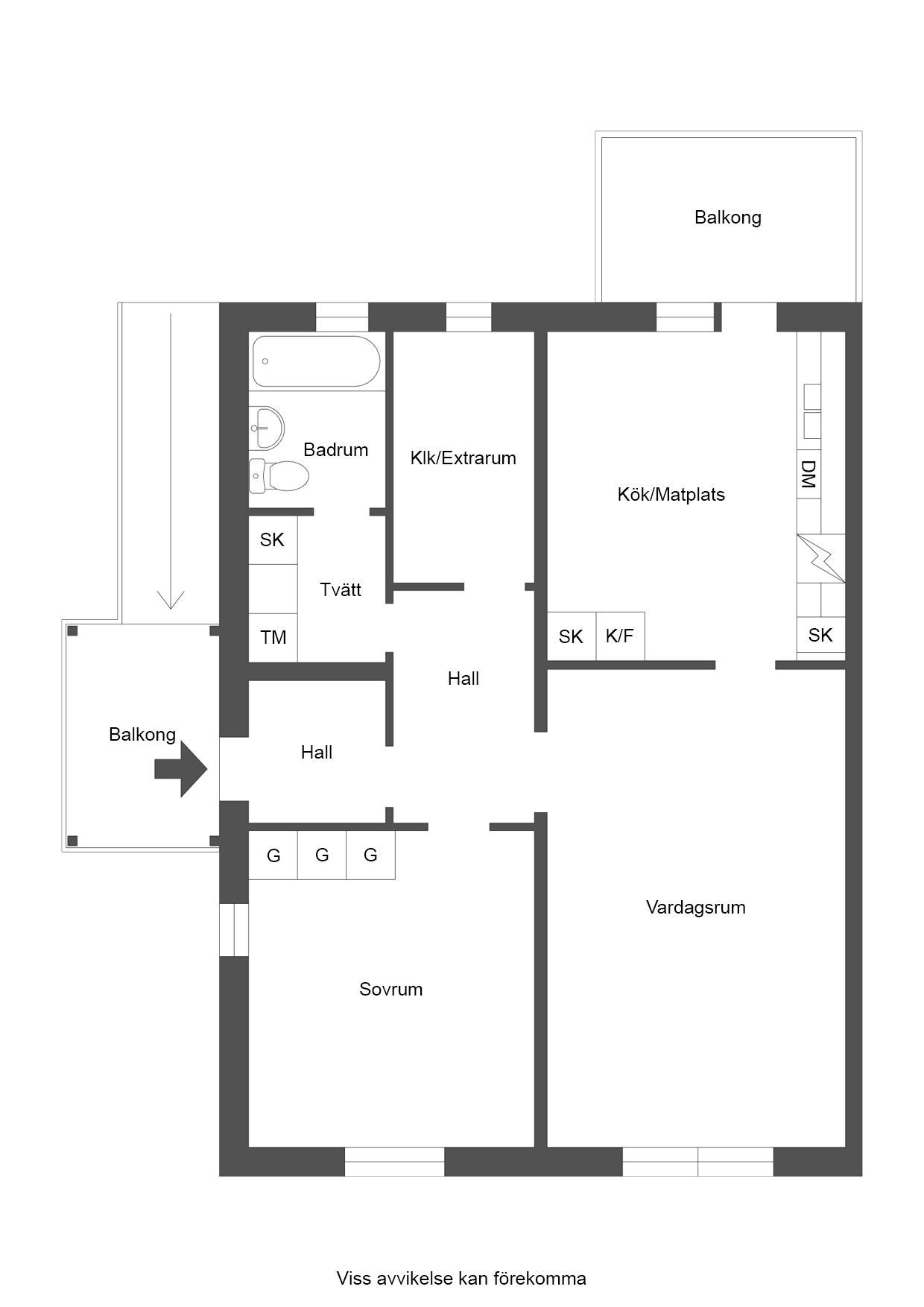 När du kliver in möts du av en välkomnande hall med plats för ytterkläder. Till vänster ligger badrummet med badkar/duschmöjlighet och separat tvättstuga. Extra rummet, som ligger i anslutning till hallen, kan användas som klädkammare, barnrum eller hemmakontor. Det rymliga sovrummet har tre garderober och plats för dubbelsäng. Vardagsrummet är ljust och luftigt med fint ljusinsläpp och sociala ytor. Köket är funktionellt och har matplats intill fönstret samt utgång till balkongen, som är utrustad med skärmtak. Härifrån har du utsikt över den lugna och gröna innergården med lekplats – perfekt för både avkoppling och lek.