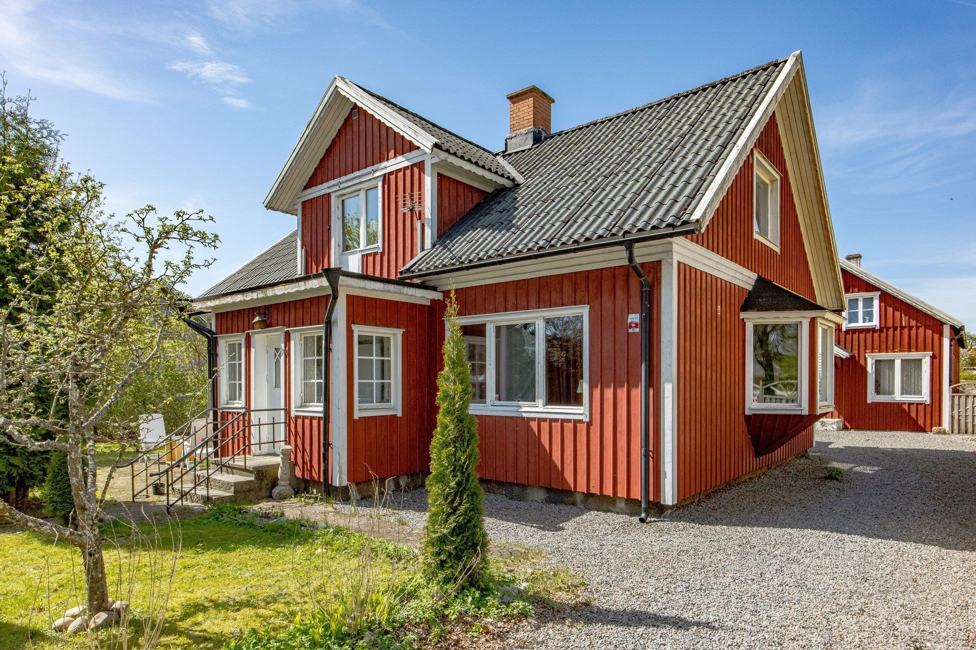 Med ett bra och centralt läge i Slöinge säljes en charmig fastighet där tomten uppgår till hela 1540kvm. På fastigheten finns en större 1.5 plansvilla, en separat byggnad med en lägenhet samt förråd/loft.Trädgården är uppvuxen och har infarter från både Stationsgatan samt Syréngatan.