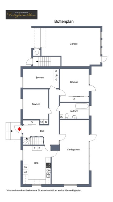 Uppgifterna härrör huvudsakligen från säljaren och kontrolleras endast av fastighetsmäklaren om omständigheter ger anledning till detta. Uppgifter beträffande bostadsytor är hämtade ur fastighetsregistret och bör kontrolleras av köpare om det anses betydelsefullt.
