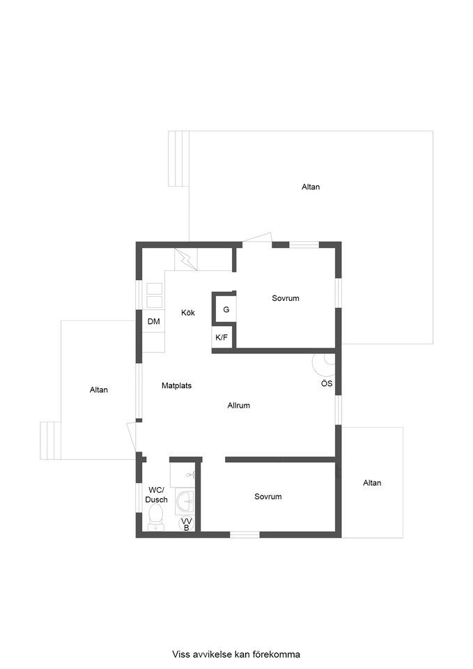 Byggnadens boarea är ej uppmätt. Köparen uppmanas att vidta uppmätning om det anses betydande.
