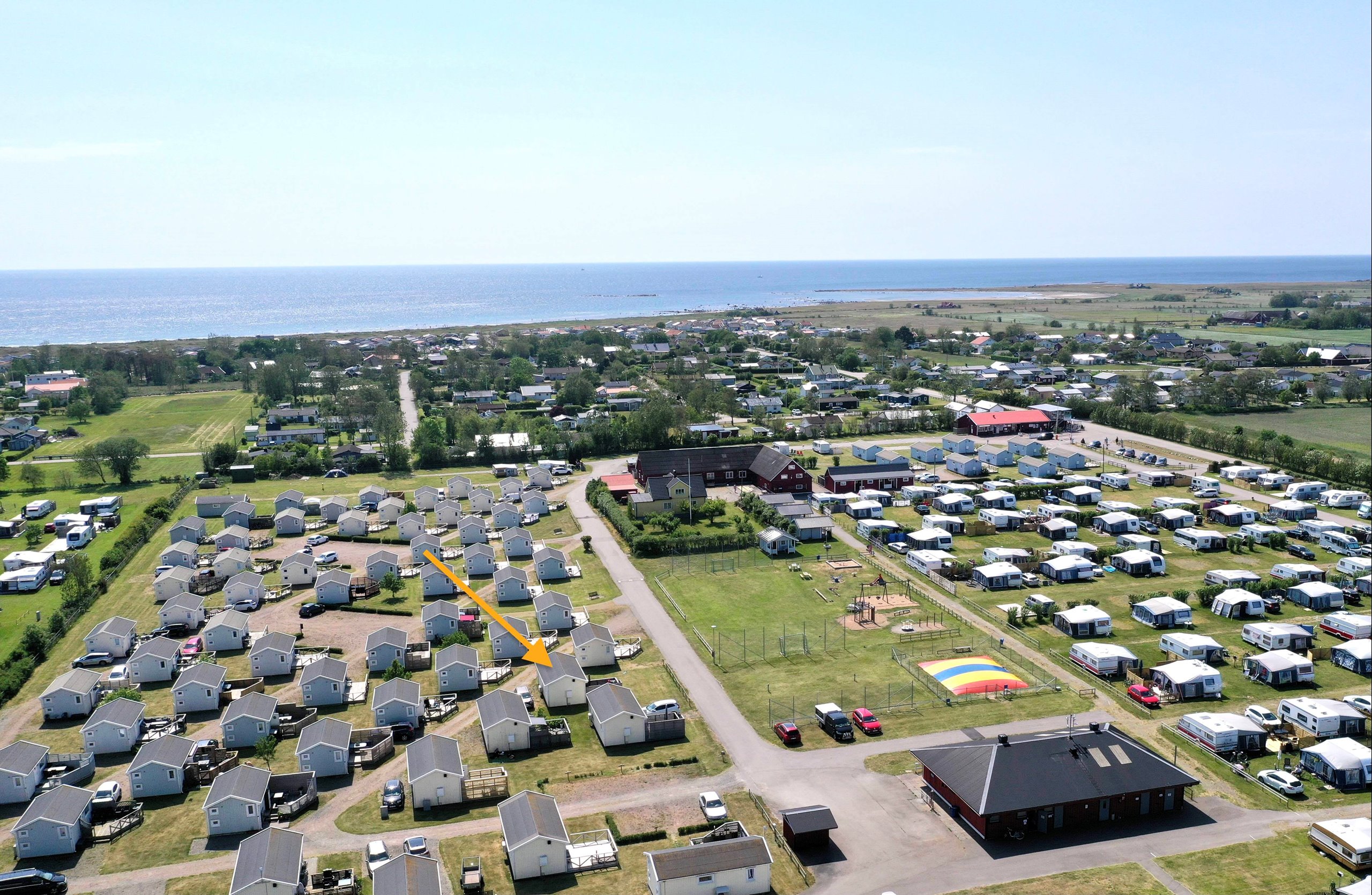 Till stranden och Olofsbo havsbad promenerar du på cirka 10 minuter (ca 700 meter). På campingen finns sommarbutik, pizzeria och i Olofsbo finns även en populär välsorterad Tempobutik.