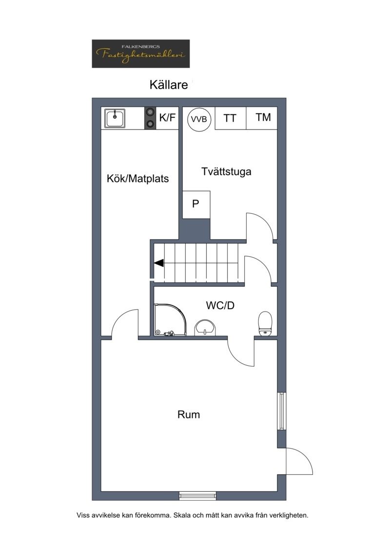 Allrum, kök med pentry samt wc/dusch. I källaren finns tvättstuga.